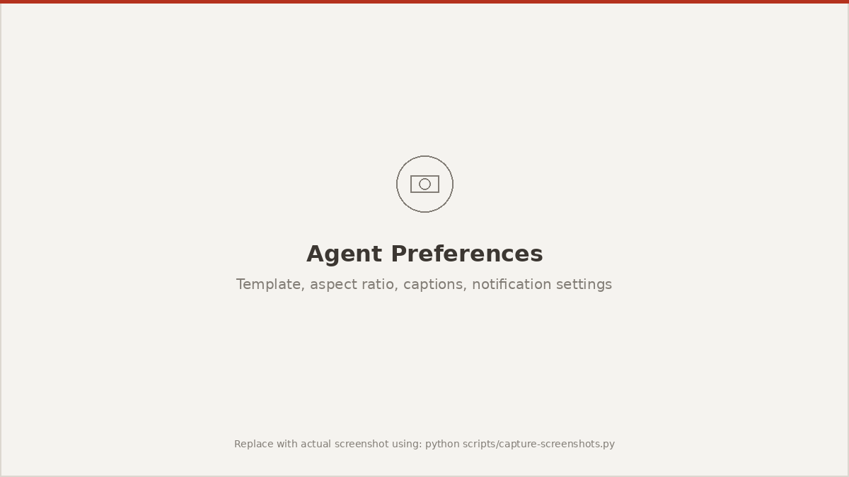 These preferences apply to all agent-generated clips. You can override settings for individual clips in the canvas editor.